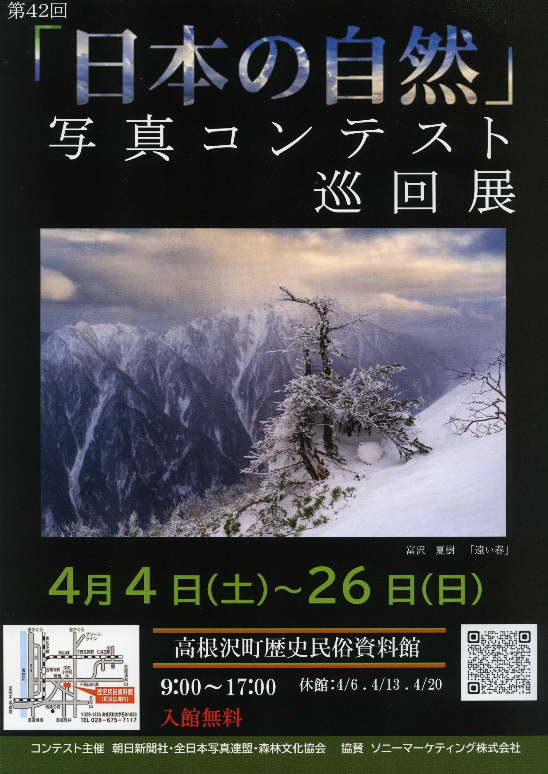 第42回「日本の自然」写真コンテスト巡回展が栃木県高根沢町歴史民俗資料館にて開かれます。 日時 : 2026年 4月 4日(土)~ 2026年 4月 26日(日) 9:00 ~ 17:00 ...